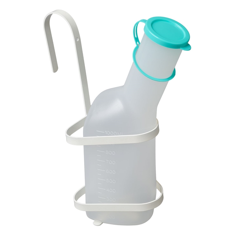 - Stabile Halterung für sicheres und auslaufsicheres Positionieren der Urinflasche