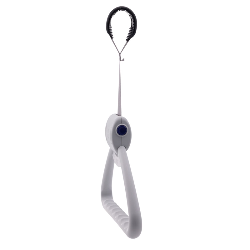 Der große Verstellbereich von 290–600 mm ermöglicht eine flexible Anpassung an unterschiedliche Bedürfnisse. Dank der automatischen Längeneinstellung über den seitlichen Knopf lässt sich die Gurtbandlänge bequem regulieren. Die ergonomische Triangelform sorgt dabei für sicheren Halt und erleichtert Patienten das eigenständige Aufrichten oder Umlagern im Pflegebett.