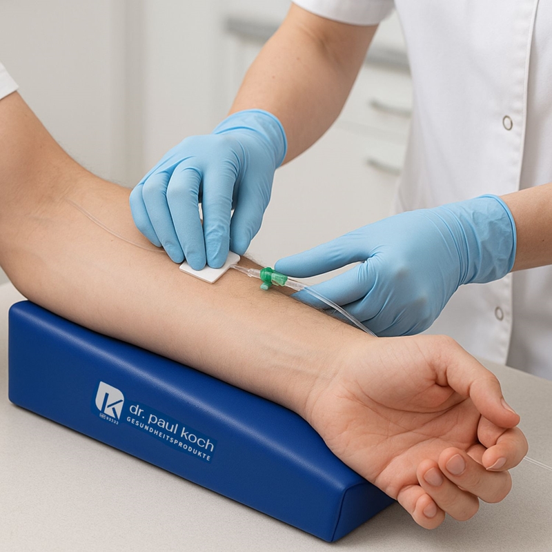 - Abgeschrägte Keilform für ergonomische Armlagerung bei Injektionen oder Infusionen