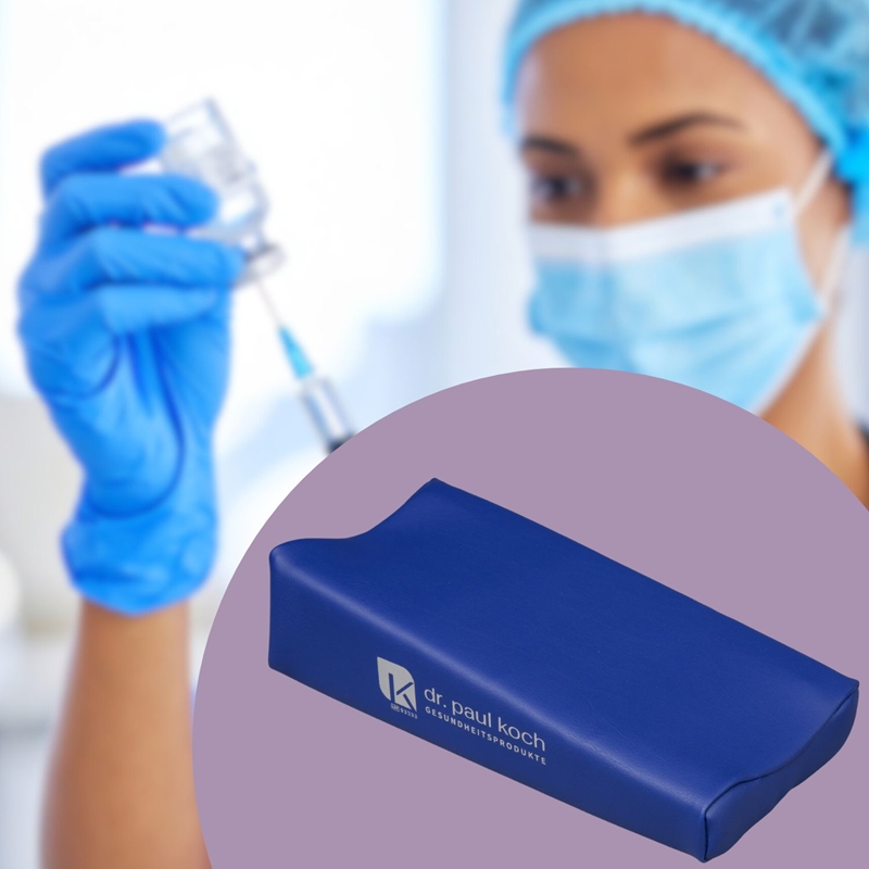 Dieses medizinische Injektionskissen in Top-Qualität hat eine abgeschrägte Keilform (Höhe 4–7,5 cm) und eignet sich ideal zur sicheren Lagerung von Armen bei Injektionen oder Blutabnahmen. Es wird im Klinik-, Pflege-, Labor- und OP-Bereich eingesetzt.