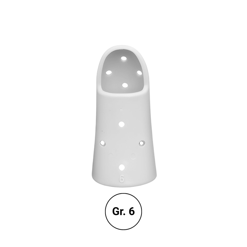 Die weiße Ausführung wirkt neutral und hygienisch – ideal für den Einsatz in Praxis, Klinik oder Therapie. Dank verschiedener Größenvarianten lässt sich die Schiene exakt an den jeweiligen Fingerumfang anpassen.